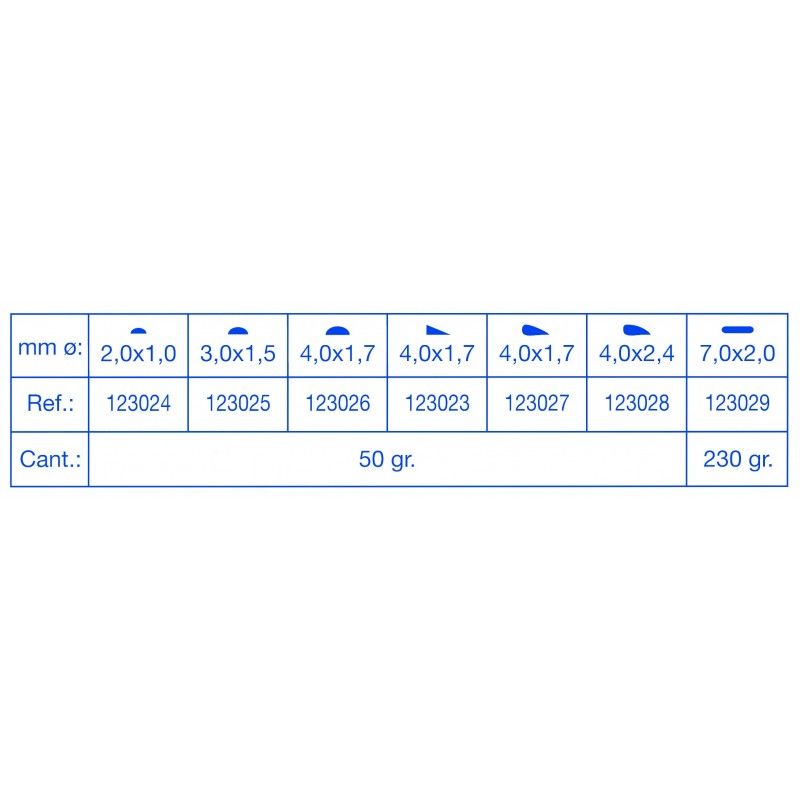 50 g. 4.0 x 1.7 mm. Ø, 50 g. 4.0 x 2.4 mm. Ø, 50 g. 4.0 x 1.7 mm. Ø